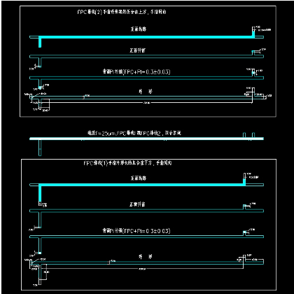 雙層排線的一端為雙層金手指且有補(bǔ)強(qiáng),且有分層,對(duì)制造工藝有一定的要求和難度,另外端也雙金手指(不同位置)
