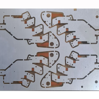 (1)設(shè)計優(yōu)化:① 結(jié)合鋁基板料性能測試數(shù)據(jù),確定鋁基片最優(yōu)厚度與柔性基材規(guī)格,確保兩者熱膨脹系數(shù)匹配;② 優(yōu)化彎折區(qū)域線路布局,預(yù)留彎折余量,避讓鋁基片關(guān)鍵區(qū)域,避免線路集中;③ 優(yōu)化焊盤、孔位設(shè)計,貼合生產(chǎn)工藝極限,減少制造難度。